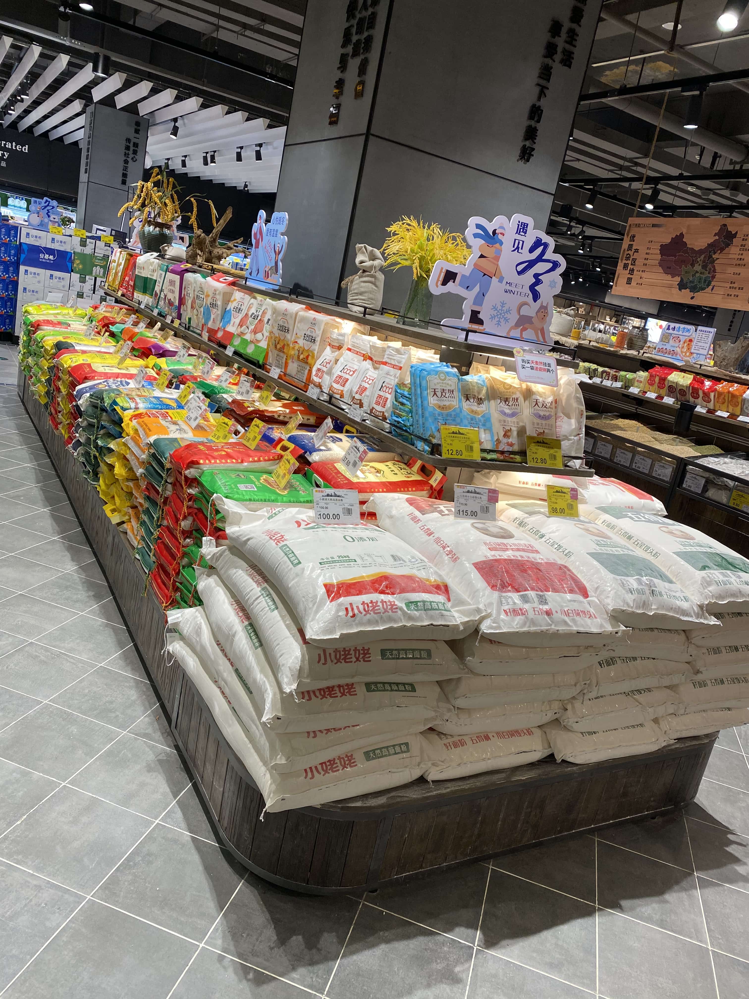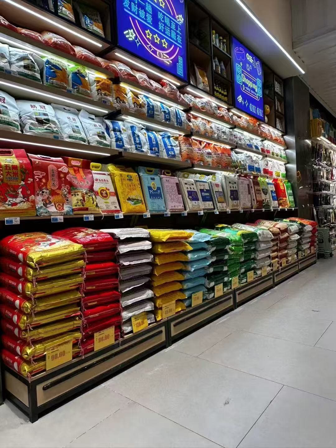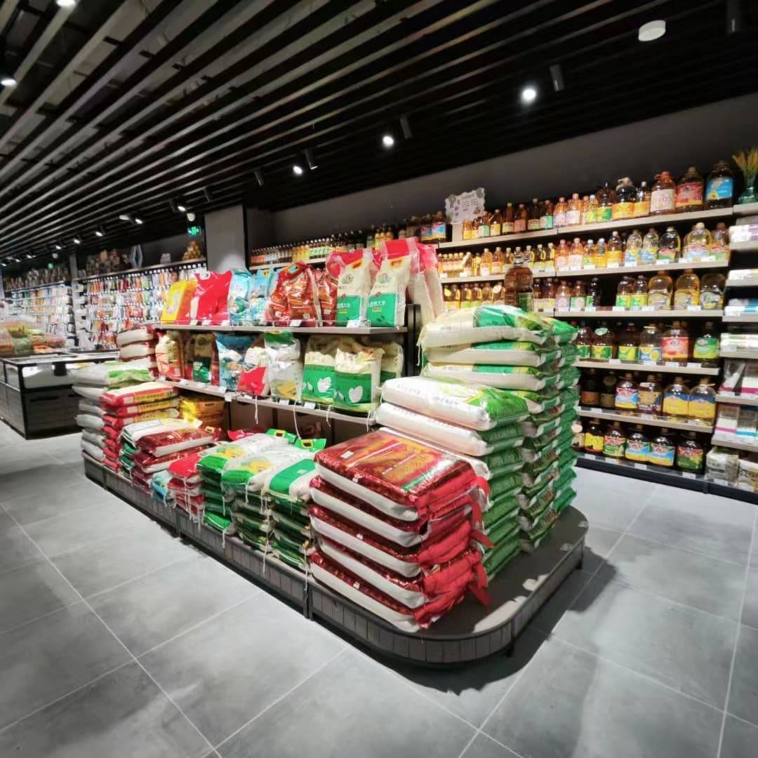 货架承载:袋粮中岛